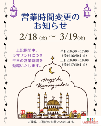 トルコ文化センターや各教室からのお知らせ。お得な情報も!